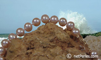 Este collar esta compuesto de perlas bien brillantes. Son las mas bellas perlas de agua dulce que se pueden encontrar en las granjas. Se encuentran muy pocas en una cosecha. Las compramos una a una para poder proponerle estos estupefacientes collares. Las perlas son bien redondas, montadas con un cierre en oro 14K. Estimado G.I.A. a : 420 € (AA+)